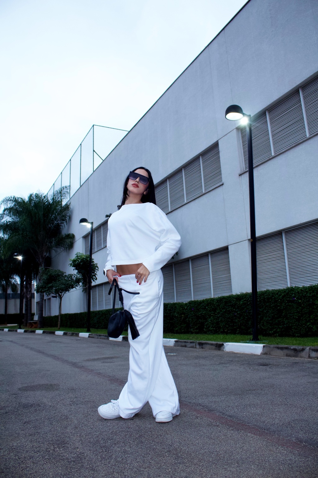 Combine com tênis de plataforma para um visual street, ou aposte em acessórios dourados e uma sandália de tiras para elevar o look. O conjunto branco é perfeito para quem ama uma pegada minimalista e clean.